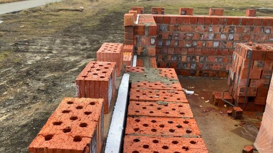 Толщина стен 45 см состоит из керамического кирпича, облицовочного кирпича и 5 см пеноплатста 25 плотности – гарантия тепла и шумоизоляции.
